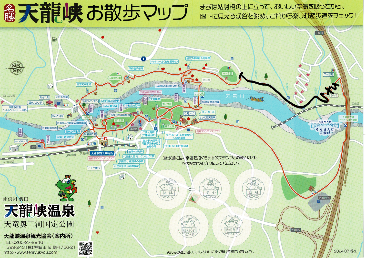 本日「天龍峡をどり」を開催いたします2025年9月6日天龍峡縁日 始まるよ!2025年9月6日 2025年9月6日 先日までの台風15号による強風と雨の為 龍東道で倒木がありました 皆さまに安全に歩いていただくためにも しばらくのあいだ通行止めとさせていただきます 場所はそらさんぽ天龍峡の千代側 下村広場から龍東道を降りる階段~龍江の今村公園下までです 地図の黒く塗られたところ以外の遊歩道(赤い道)は 問題なく歩いていただけます。 龍東道ファンの皆さま しばらくのあいだお待ちくださいませ m(__)m osada
