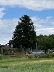 この看板の⇒、この隣にある大木(カヤノキ)が紅雲寺跡です
