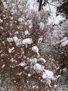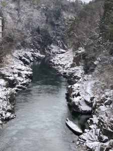 八重桜街道イルミネーション2月7日㈯までです2026年2月4日 2026年2月8日 立春を過ぎての寒波到来 天龍峡の峡谷でも久しぶりの雪で墨絵のような景色となっています 姑射橋から見た天竜川下流 ライン下りの舟も真っ白になって風情を増している峡谷です 市丸碑前の遊歩道は足跡が 凍ると滑りやすいのでお気を付けください ドウダンツツジには綿の花が咲いたようです 大変冷え込んでいます、凍結した遊歩道となりますので十分にお気をつけてお歩きください🐾 hara