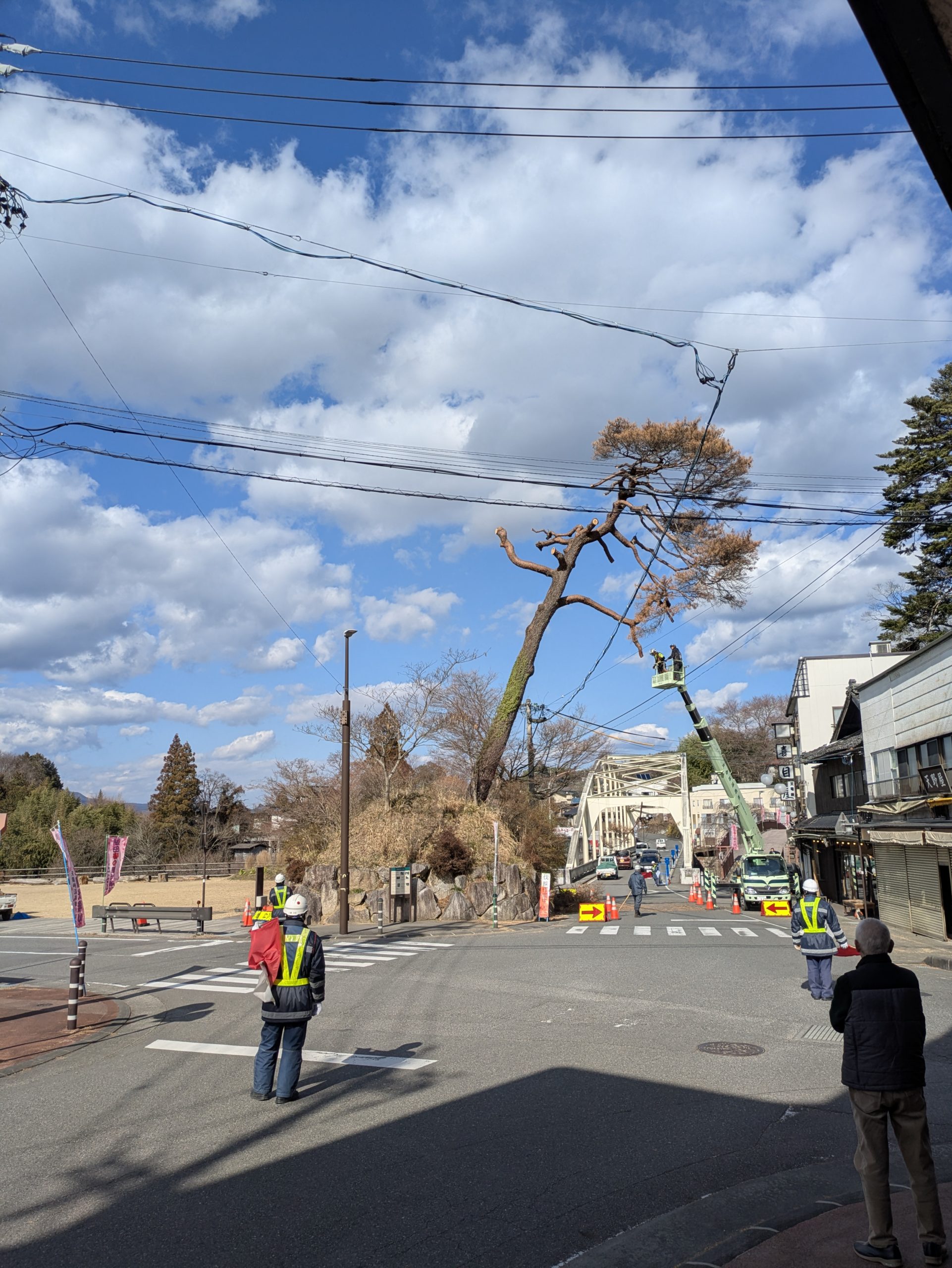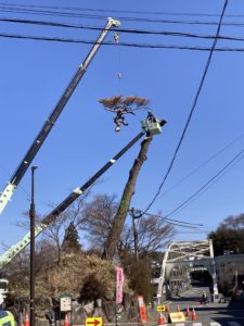天龍峡のシンボルの松ですが苦渋の決断で伐採することになり、3/11,12の両日の作業が行われました