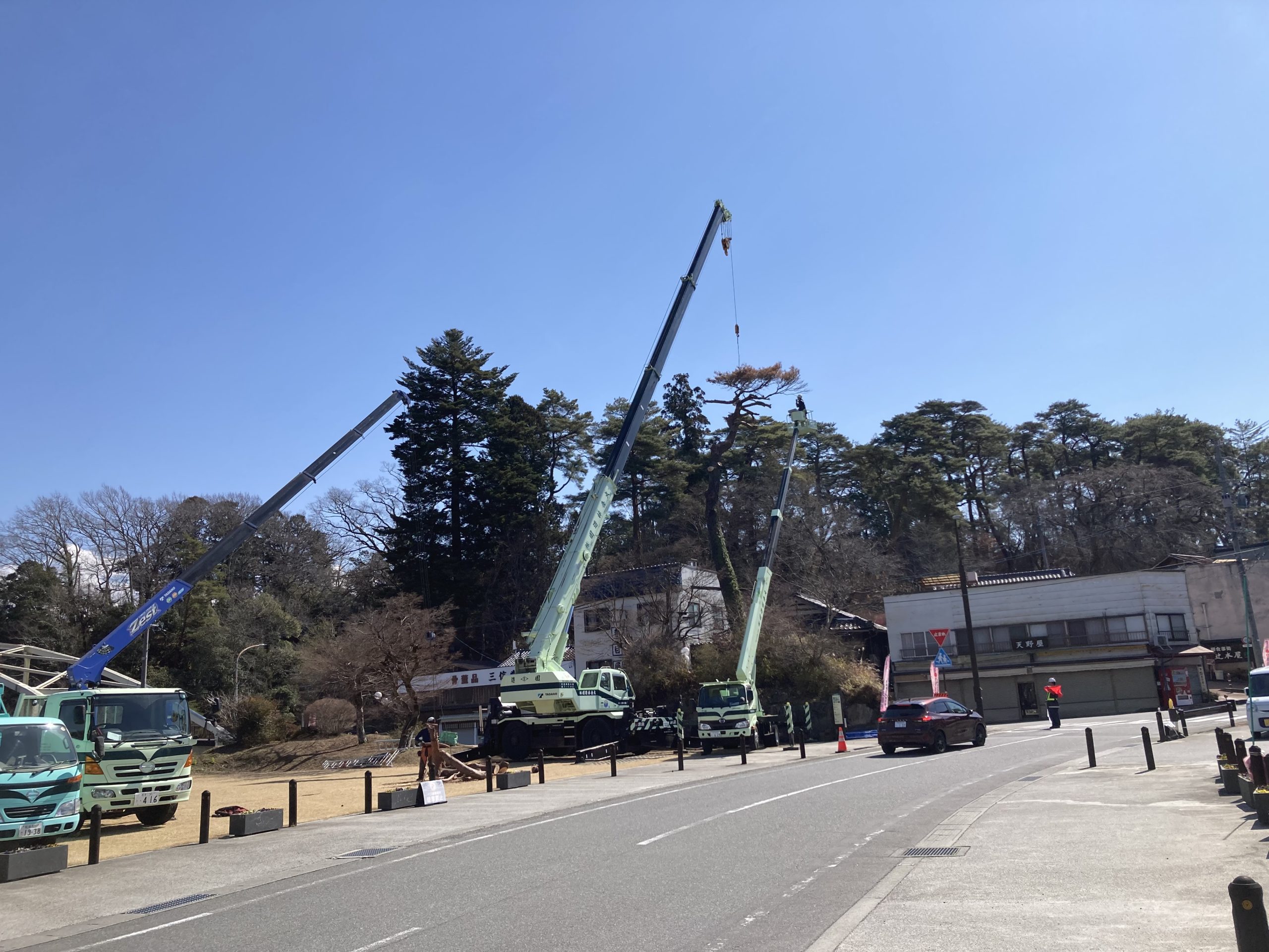 大型重機が何台もきて枝を落としていきます