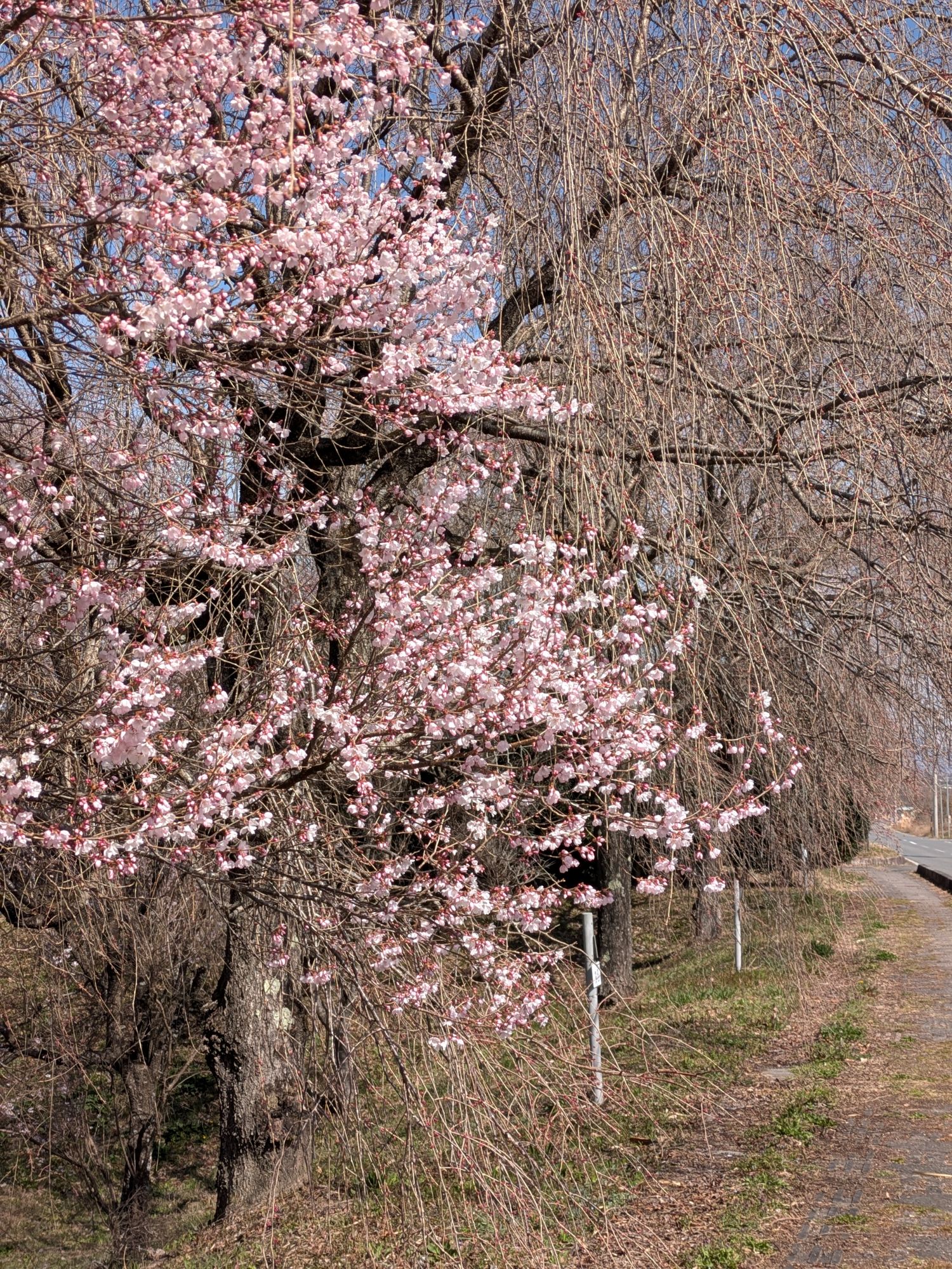 天龍峡の基準木 開花宣言しました 3/172026年3月17日 2026年3月18日 午後から曇空の天龍峡です 八重桜街道の入口付近の彼岸桜、小彼岸桜は満開です 太田下駐車場から歩いて2分程でしょうか JR川路駅近くの桜も満開です 昨年よりも早く桜の季節が始まりました 4月5日(日)には天龍峡花祭りも開催されます 春の天龍峡にぜひお越しください🌸 osada