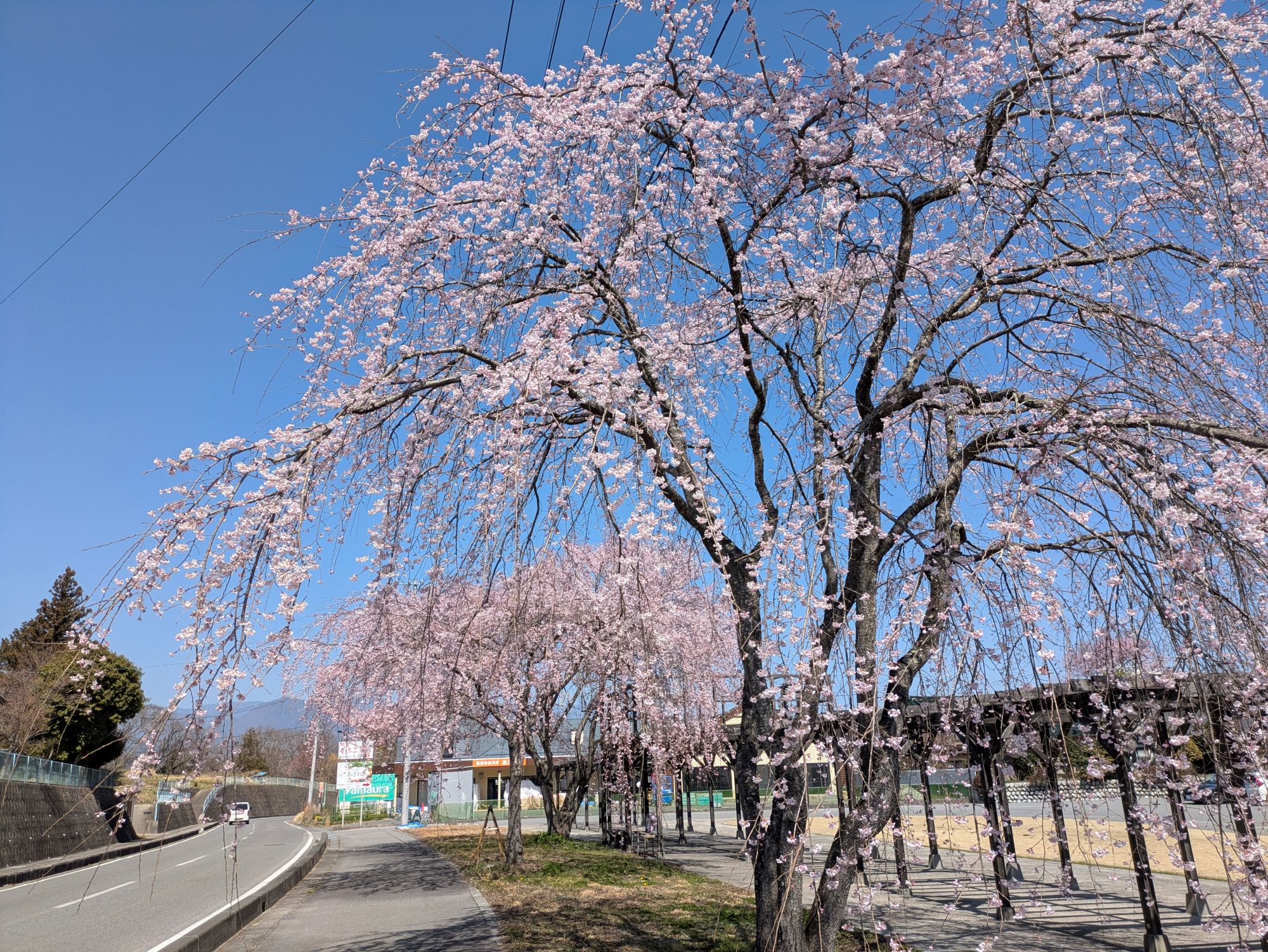 太田下駐車場のシダレサクラもずいぶん開花が進んでいます