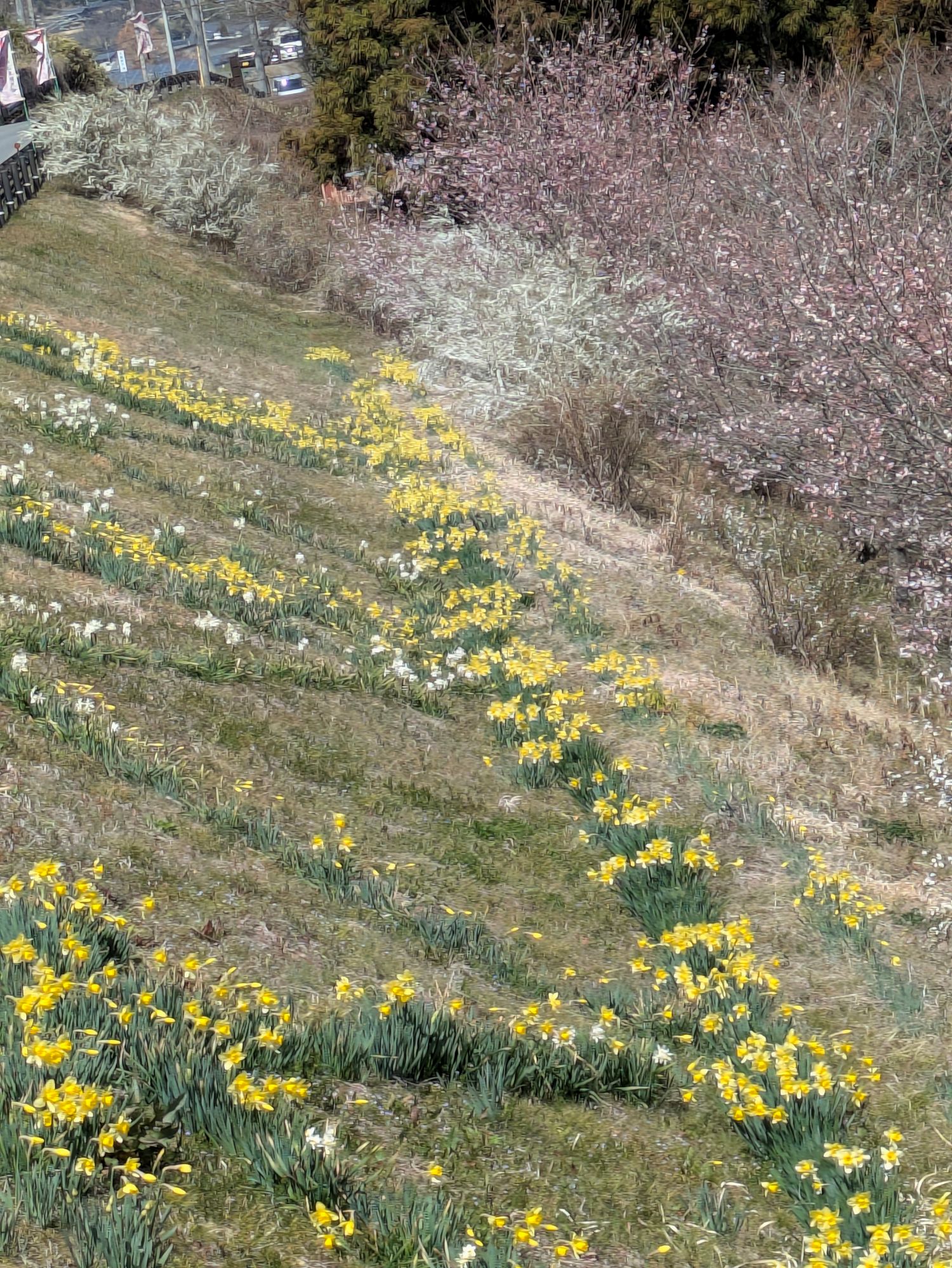 姑射橋広場の土手に咲いている神代曙(ジンダイアケボノ)