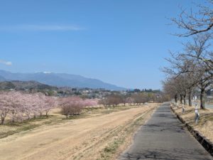 エドヒガン桜の下のムラサキハナナ(ショカッサイ)