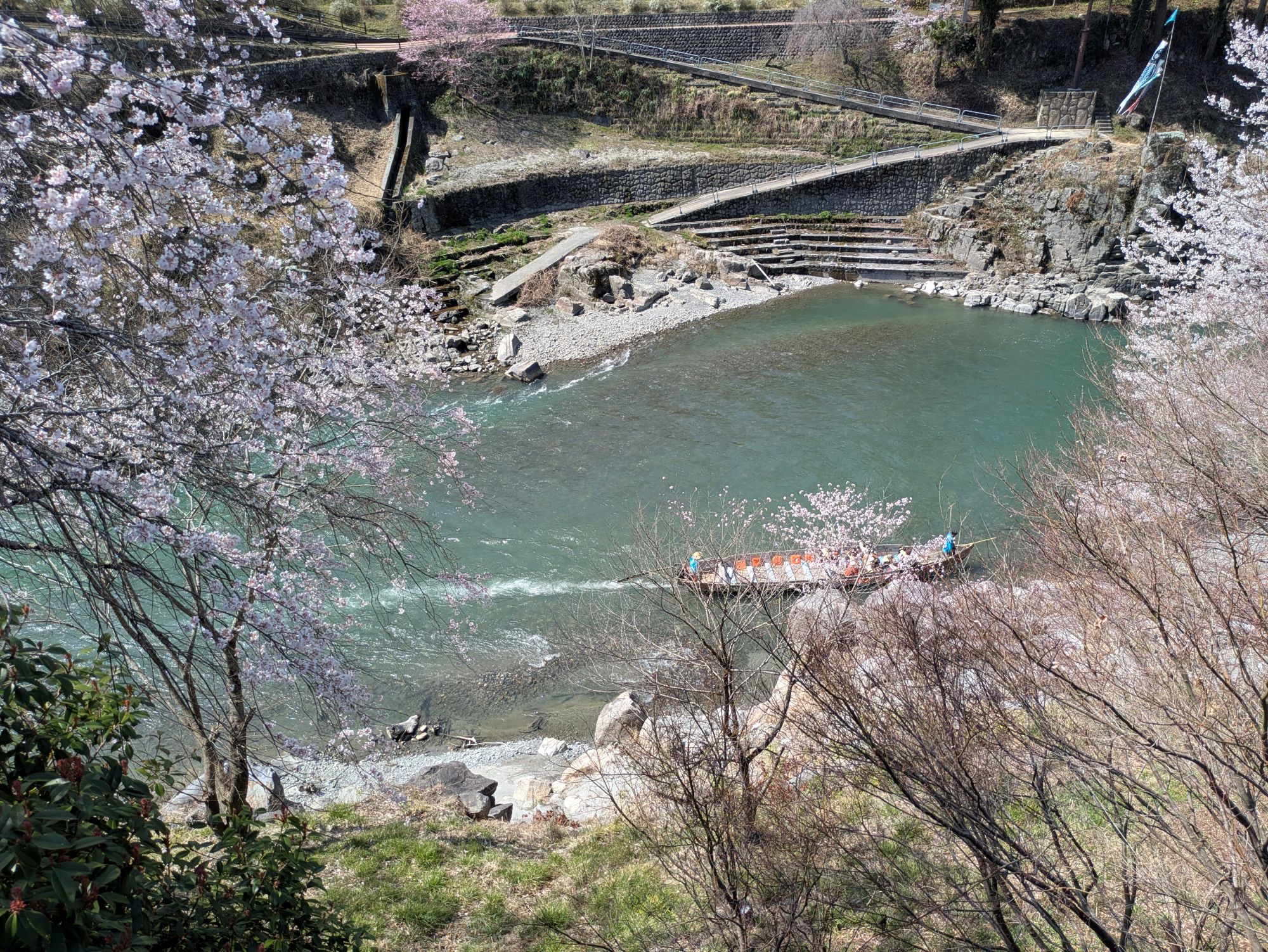 天龍ライン下り乗り場横から天竜川を見下ろします