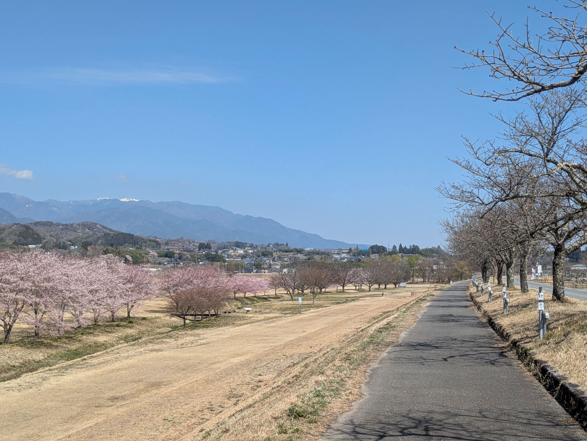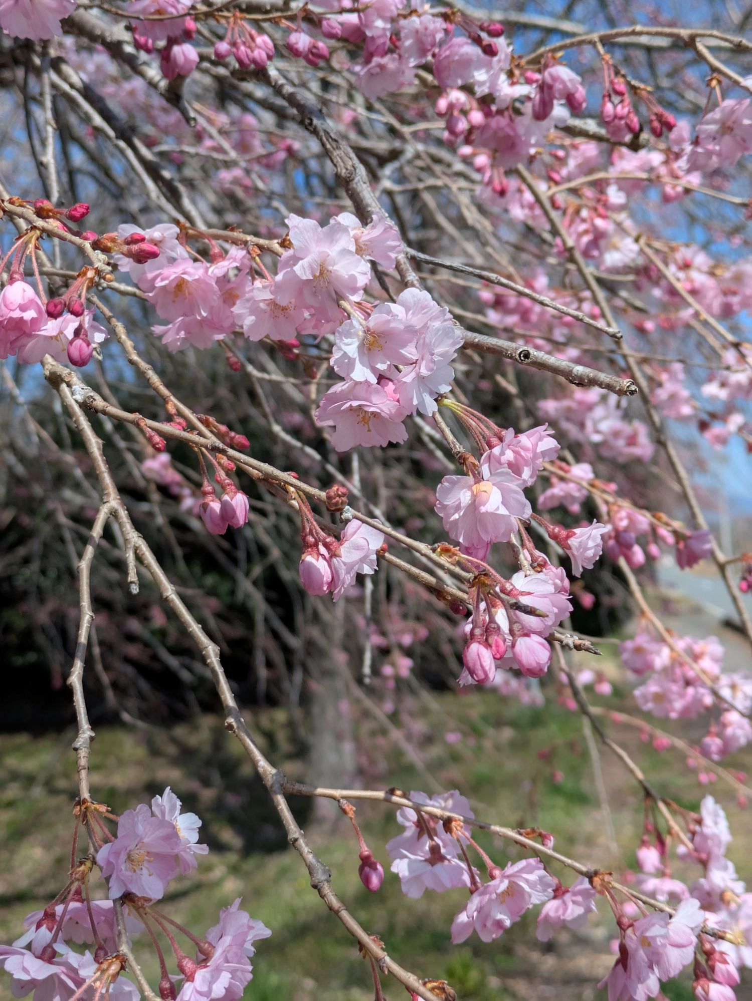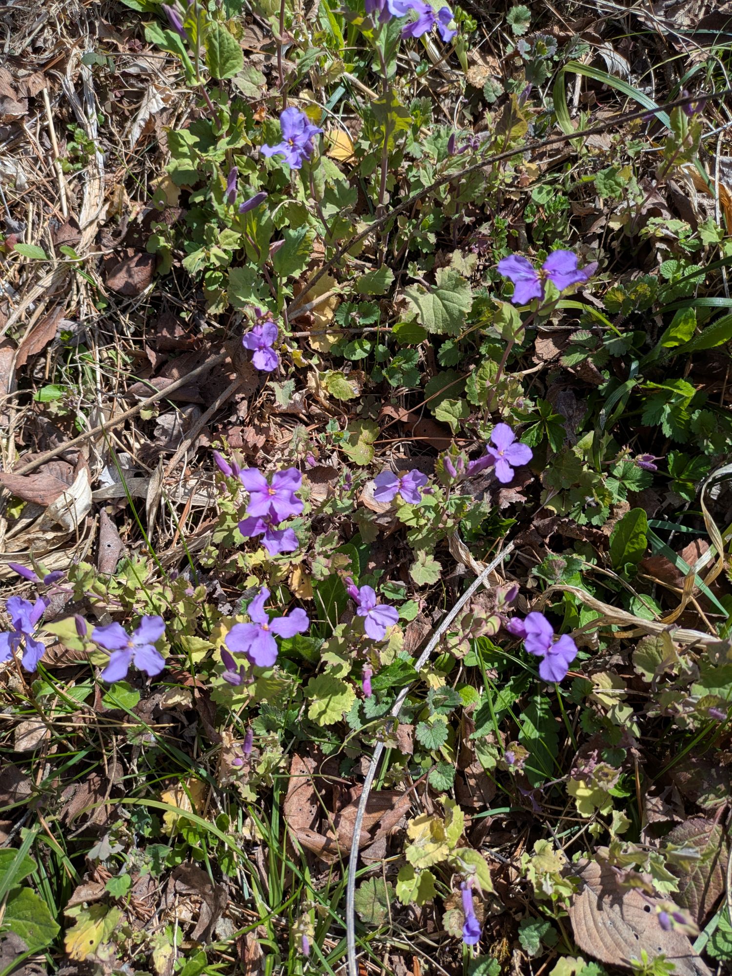 エドヒガン桜の下のムラサキハナナ(ショカッサイ)